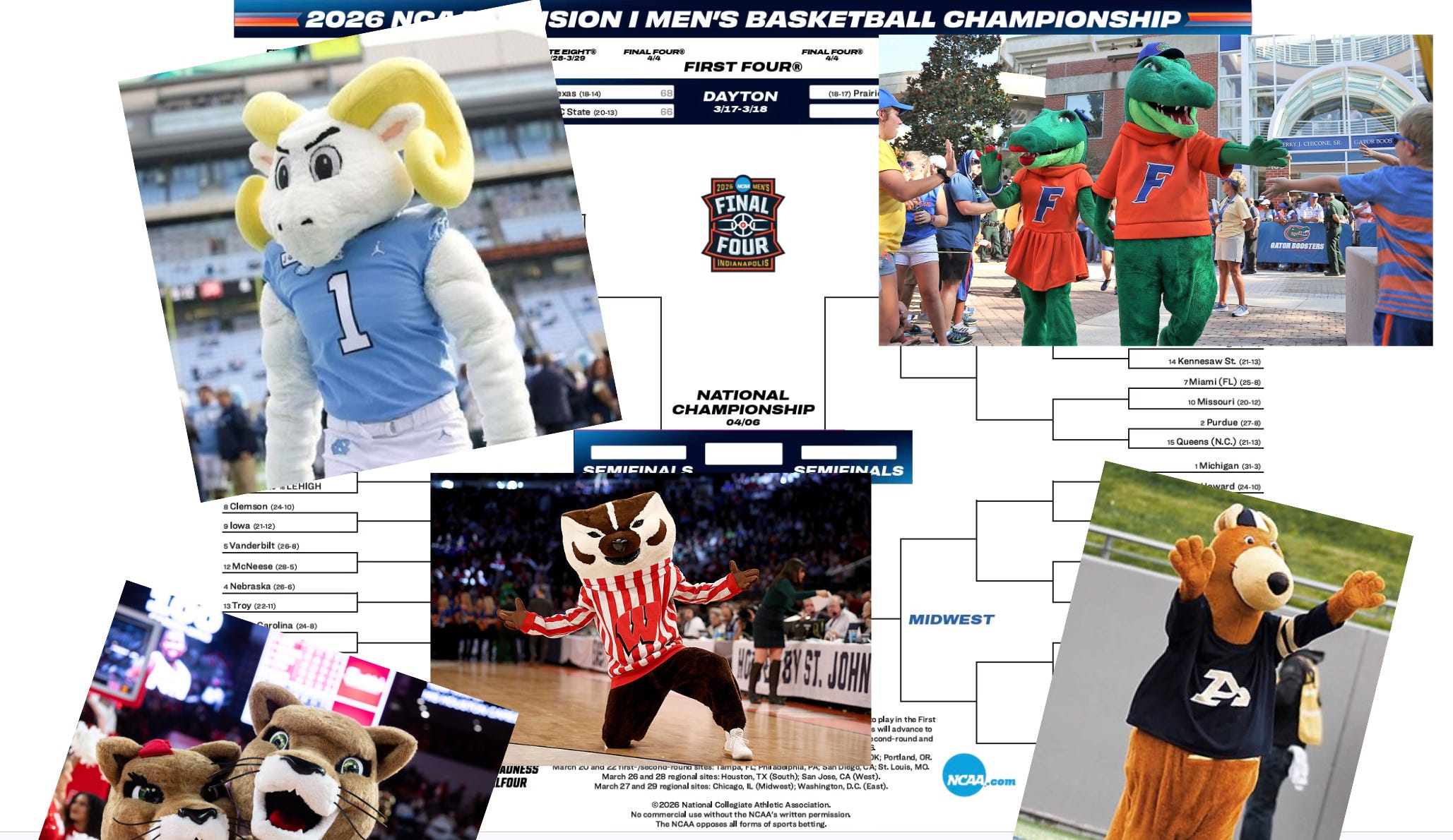 ANYWAYS, I like to participate in sports-related events without knowing much about sports. At the end of the day, the outcome of a bunch of basketball games is not something that you can predict. Sure, there are teams that are really good, but those teams can still lose all the time. You never know what’s going to happen. That’s why I like to make my bracket based on how much I like the mascots, since mascots are the best part of sports anyways.