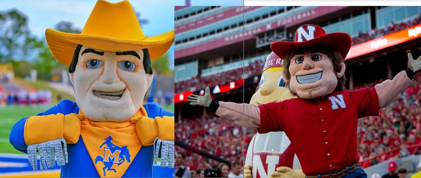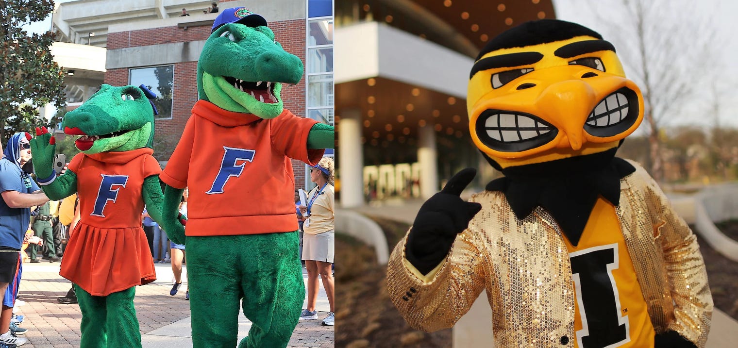 Nebraska only got this far through a fluke, and also because college sports seem to have way more humanoid mascots than I would ever care for. This cowboy guy is the least terrible out of everyone, but it’s still not good. Meanwhile, the Iowa Hawkeye is still looking fly as hell.