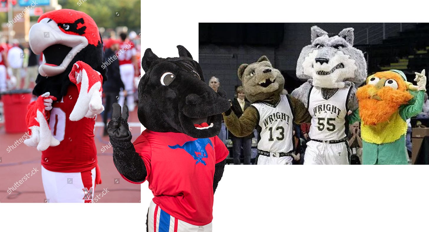 As of writing, I don’t know if Miami Ohio or SMU won, but either of those mascots look better than Wright’s, which are goofy and fun but look like they were found in the bottom of a Goodwill bin.