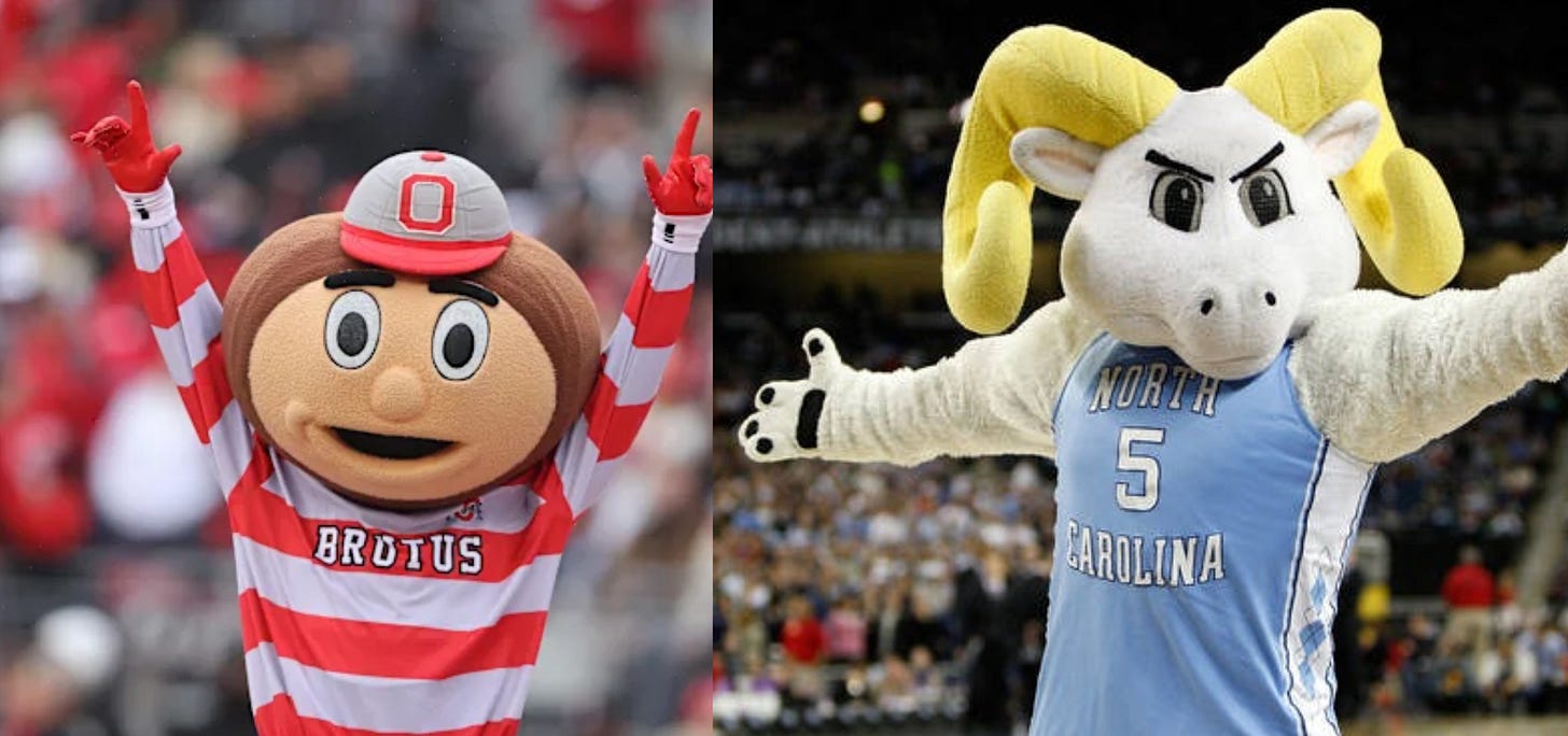 So what is the criteria for Best Mascot of March? Last year I determined by most sexy, which sexiness is still a metric I will be accounting for (I am NOT a furry, I am just attracted to charisma!!!!!). Other metrics include: vibes, if they are an actual mascot versus a live animal (instant disqualifier), and overall great design. Sex appeal is important, but design and social impact are also crucial factors in figuring out who is the best mascot of them all.