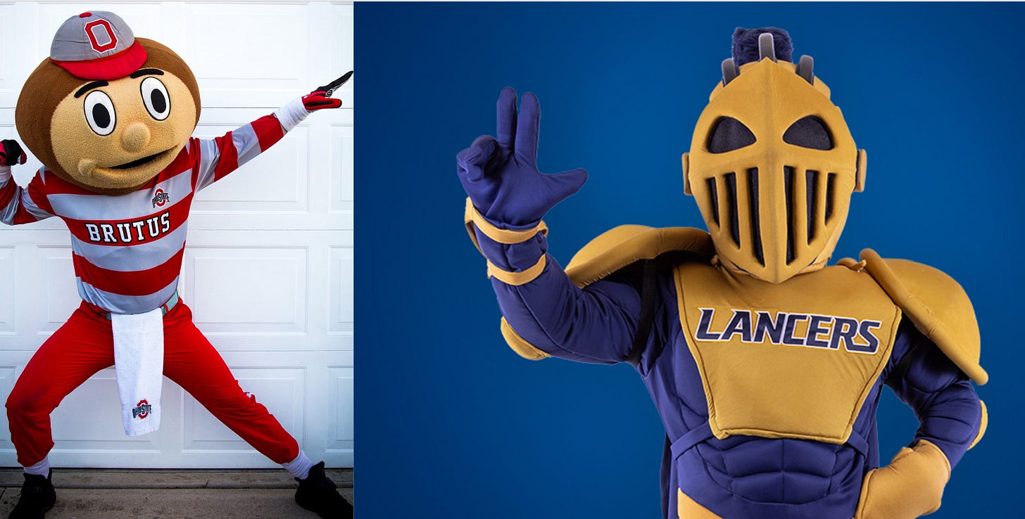 While I do appreciate the fingering finger guns, Brutus of Ohio State still stands strong as a top player in mascot design. I love this guy so much.